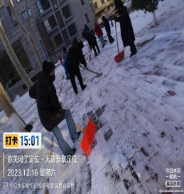 在以雪為令的環(huán)境下,我們肩負起責任:按照"先主后次,先通后清"的工作要求,新園村二期項目物業(yè)管理處于12月13日全員奮戰(zhàn),隨時準備應(yīng)對雪情。當大雪紛飛時,銀典物業(yè)的工作人員早已全員出動,帶著提前準備的融雪劑、鏟子、掃帚等清雪工具,奮力在園區(qū)中心道路、樓道口、停車場等多個地點清理積雪,防止積雪過深對業(yè)主出行造成不便。